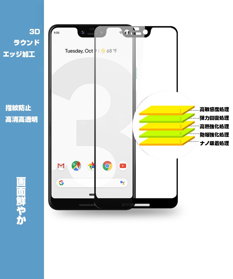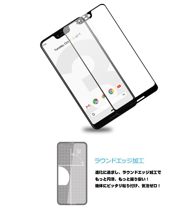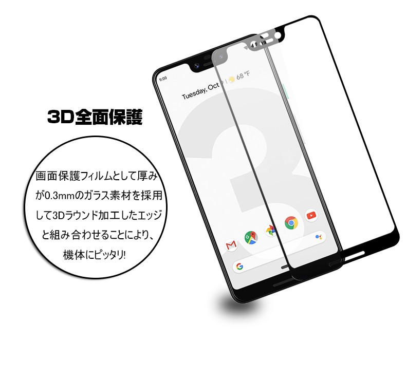 Google Pixel 3 XL 3D全面保護 強化ガラス保護フィルム Google Pixel 3 XL 曲面 液晶保護ガラスフィルム Google Pixel 3 XL 強化ガラスフィルム フルーカバー |