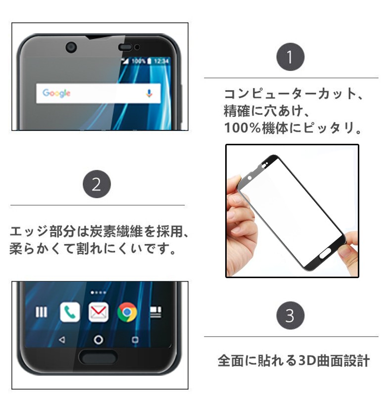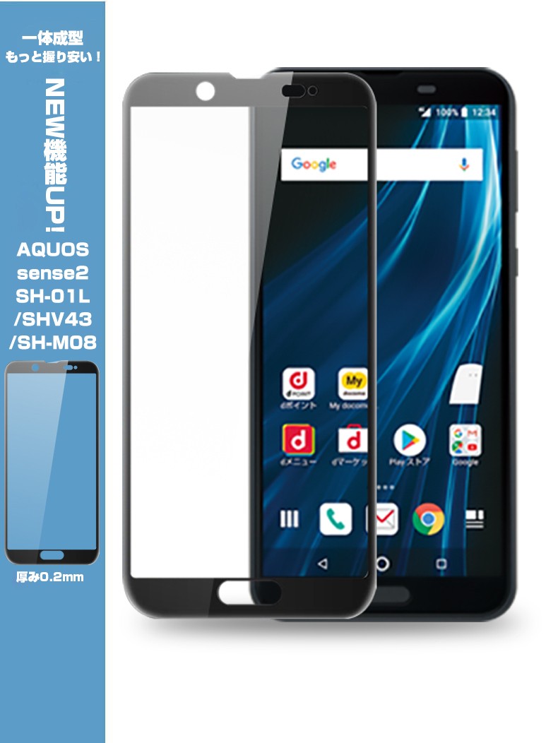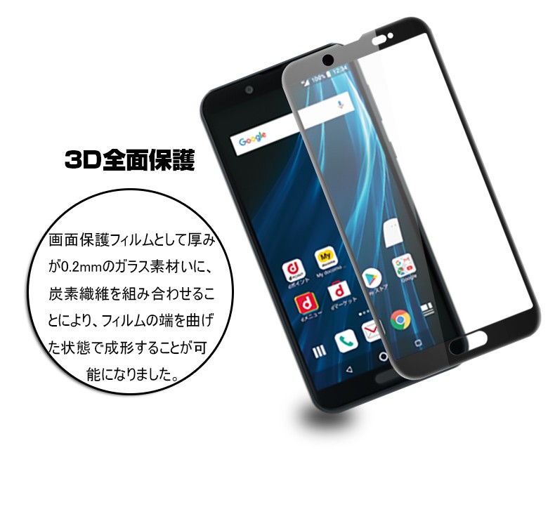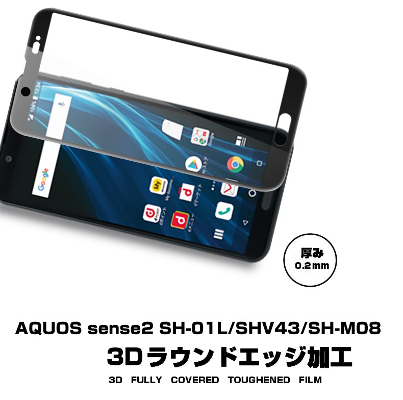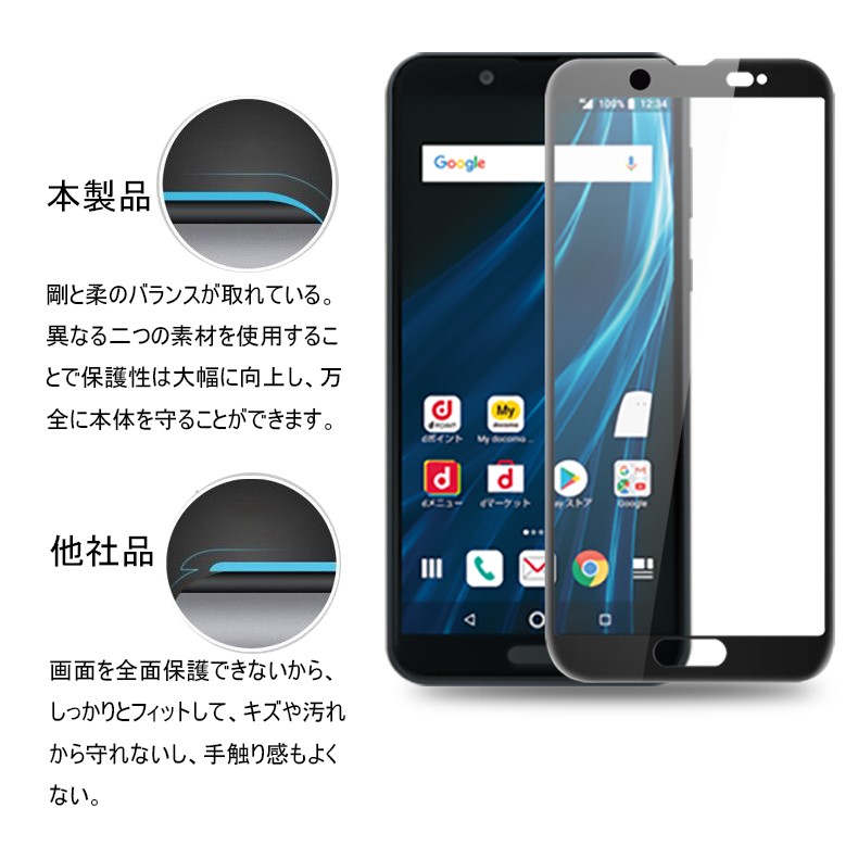 AQUOS Sense2 SH-01L SHV43 3D全面保護 強化ガラス保護フィルム ソフトフレーム AQUOS Sense2 SHV43 フルーカバー 曲面 AQUOS Sense2 SH-01L 剛柔ガラスフィルム |