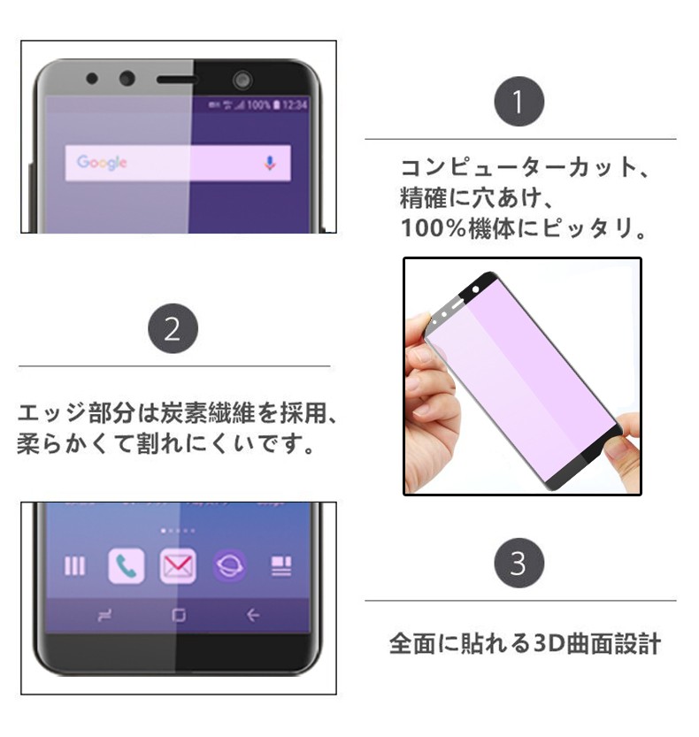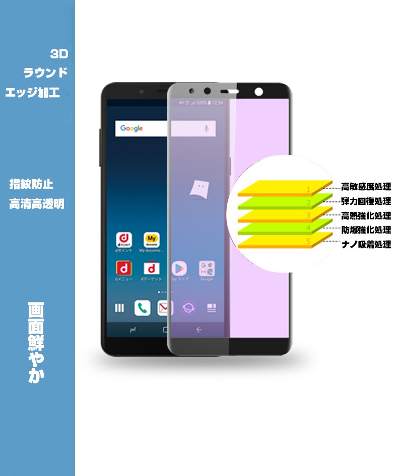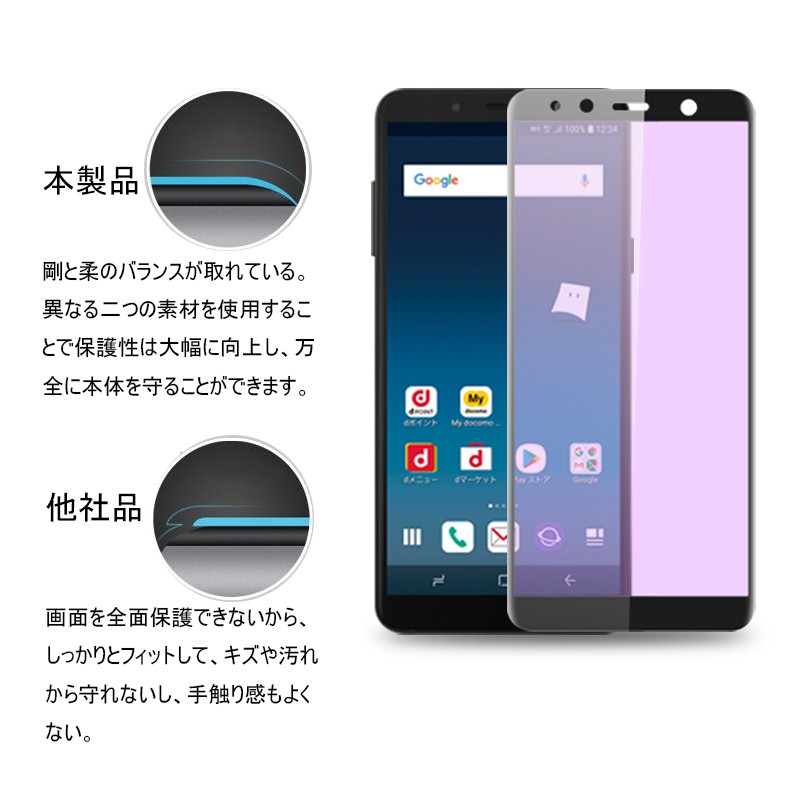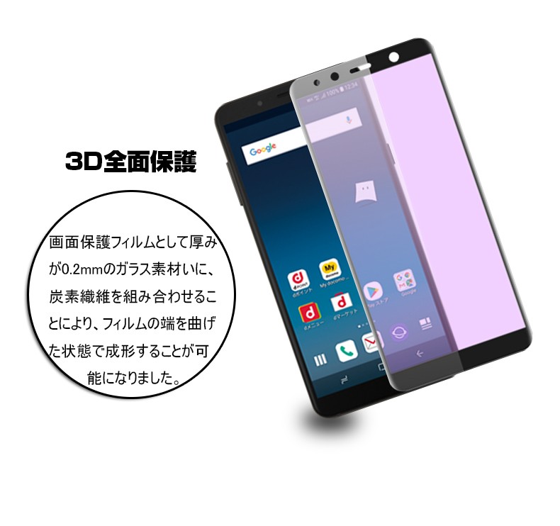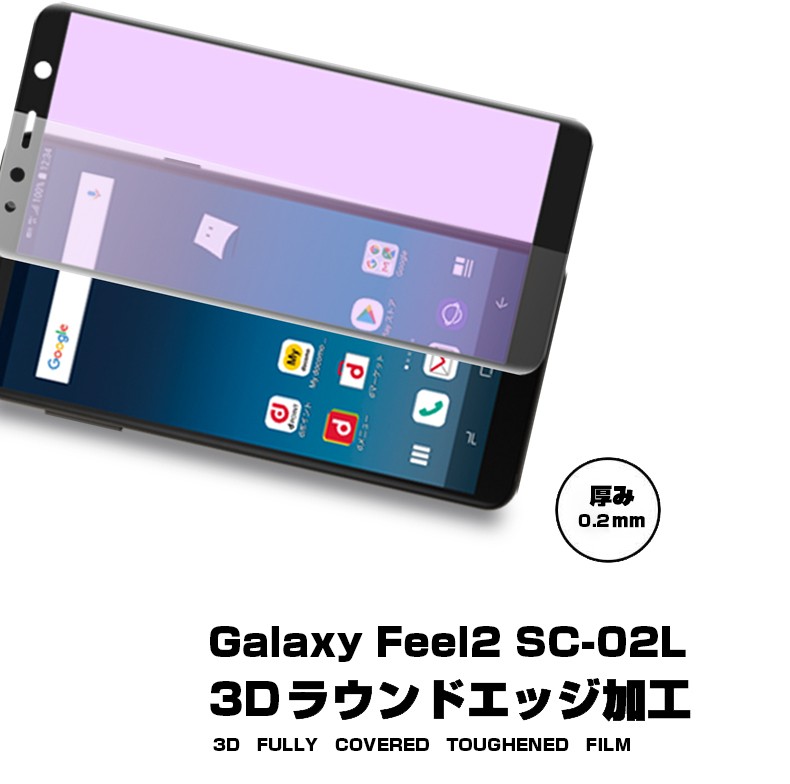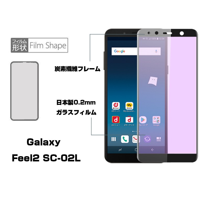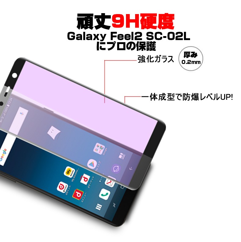 Galaxy Feel2 SC-02L 3D全面保護 ブルーライトカット 強化ガラス保護フィルム Galaxy Feel2 SC-02L ソフトフレーム フルーカバー 曲面 Galaxy Feel2 剛柔ガラス |