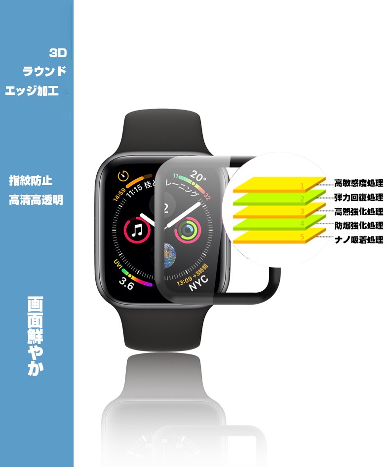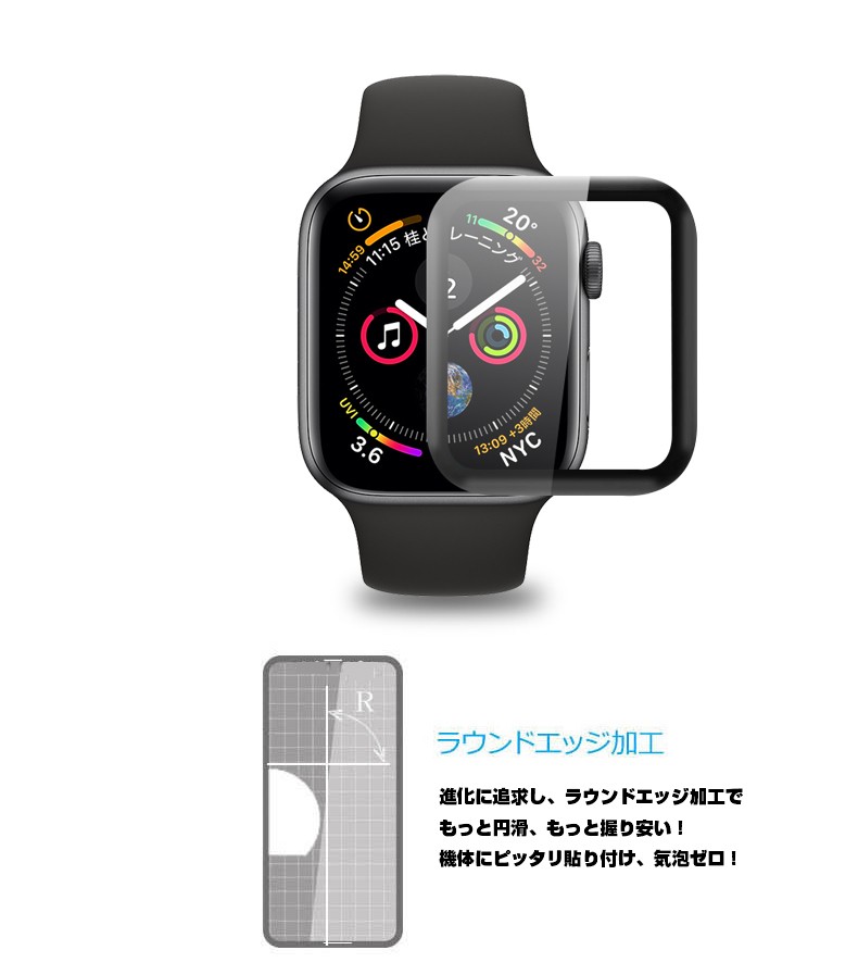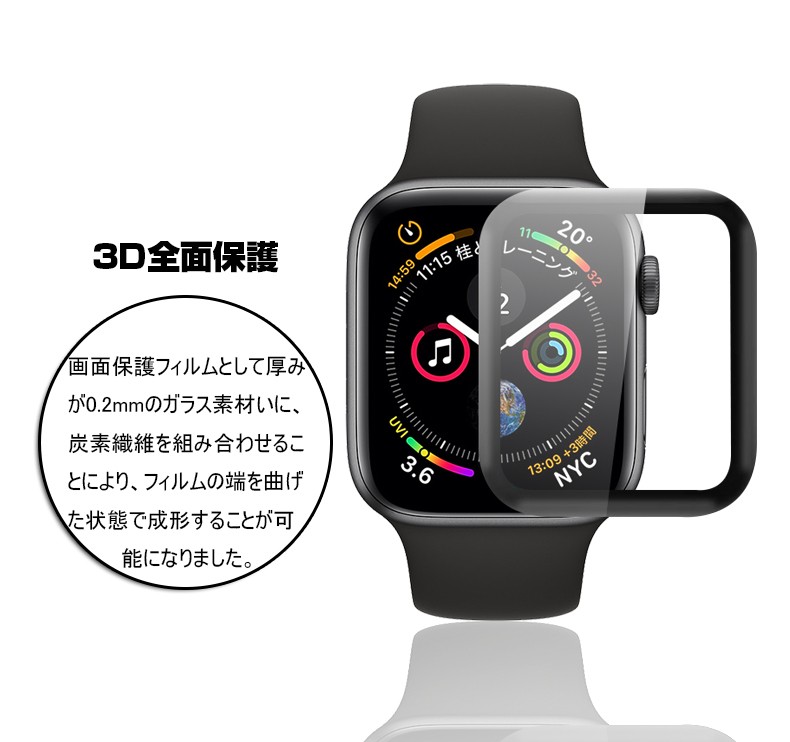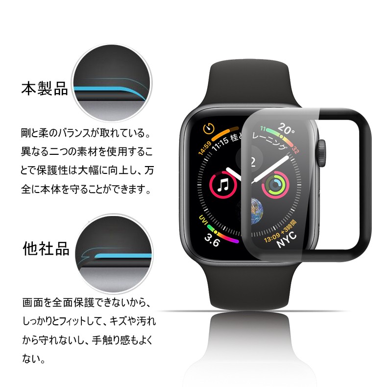 Apple Watch Series 4 3D全面保護 強化ガラス保護フィルム アップルウォッチ Series 4 ソフトフレーム フルーカバー Watch Series 4 曲面 剛柔ガラスフィルム |