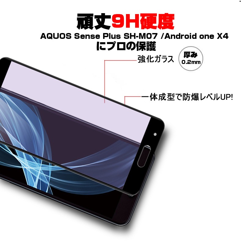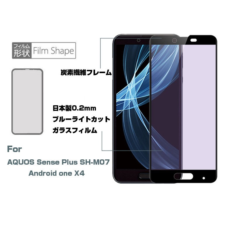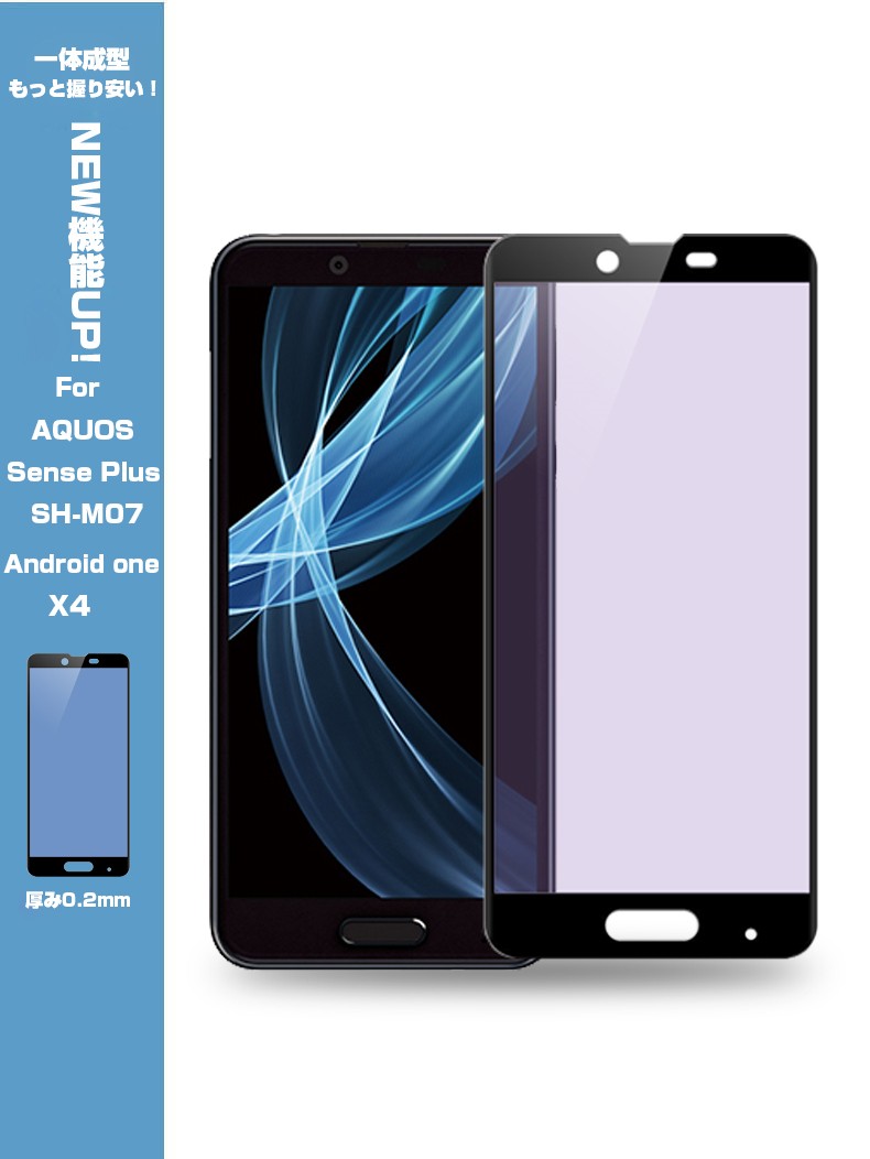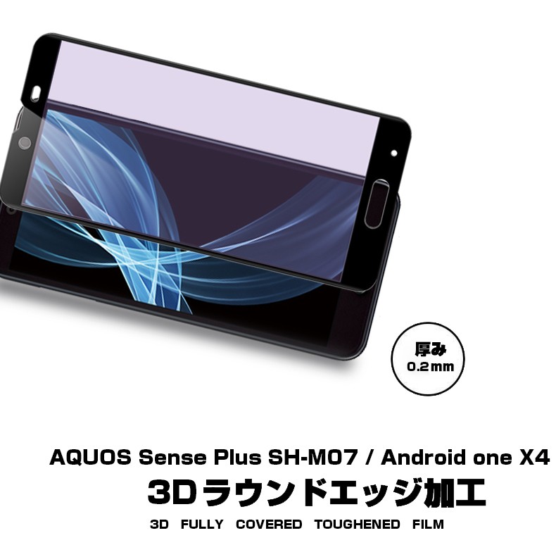 上へ Android One X4 ブルーライトカット3D全面保護ガラスフィルム AQUOS Sense Plus SH-M07 曲面 強化ガラス保護フィルム Android One X4 剛柔ガラス ソフトフレーム